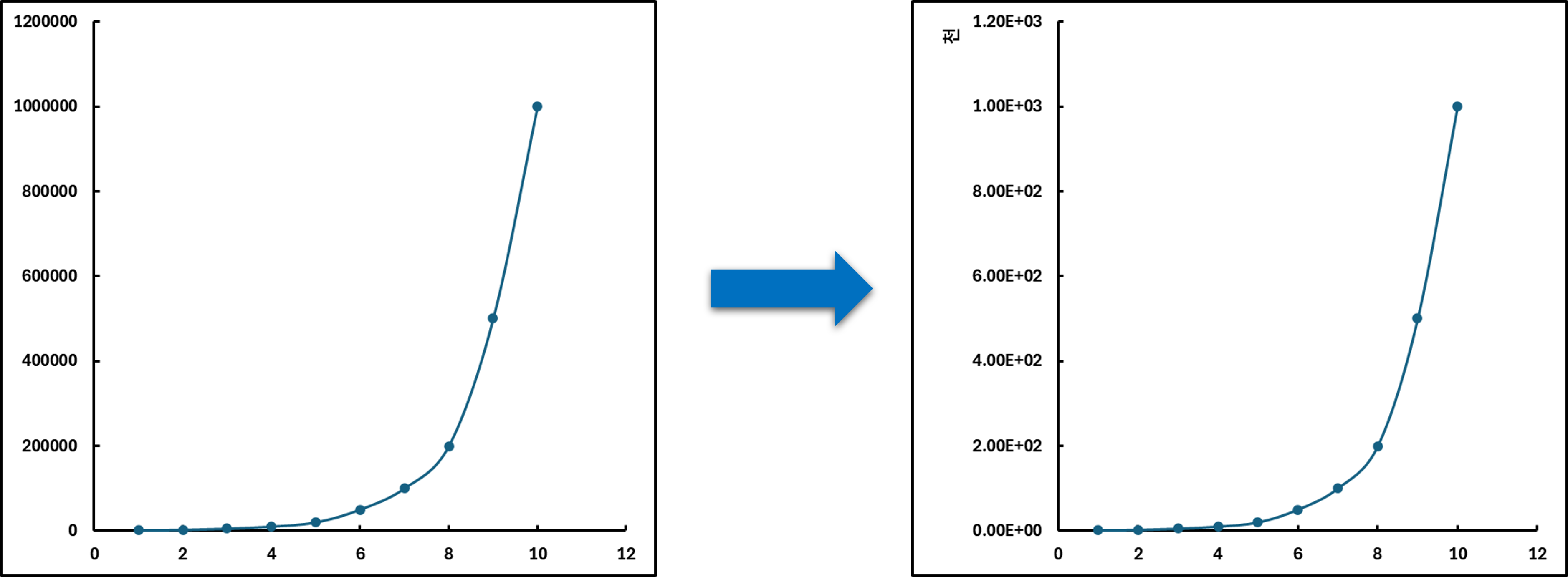 Excel 그래프에서 숫자 표기법 및 단위를 변경하는 방법은 아래와 같다.